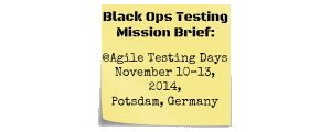 We, the Black Ops Testing Team, will put into practice all the lessons we learned from our mission at the London Tester Gathering in 2013.